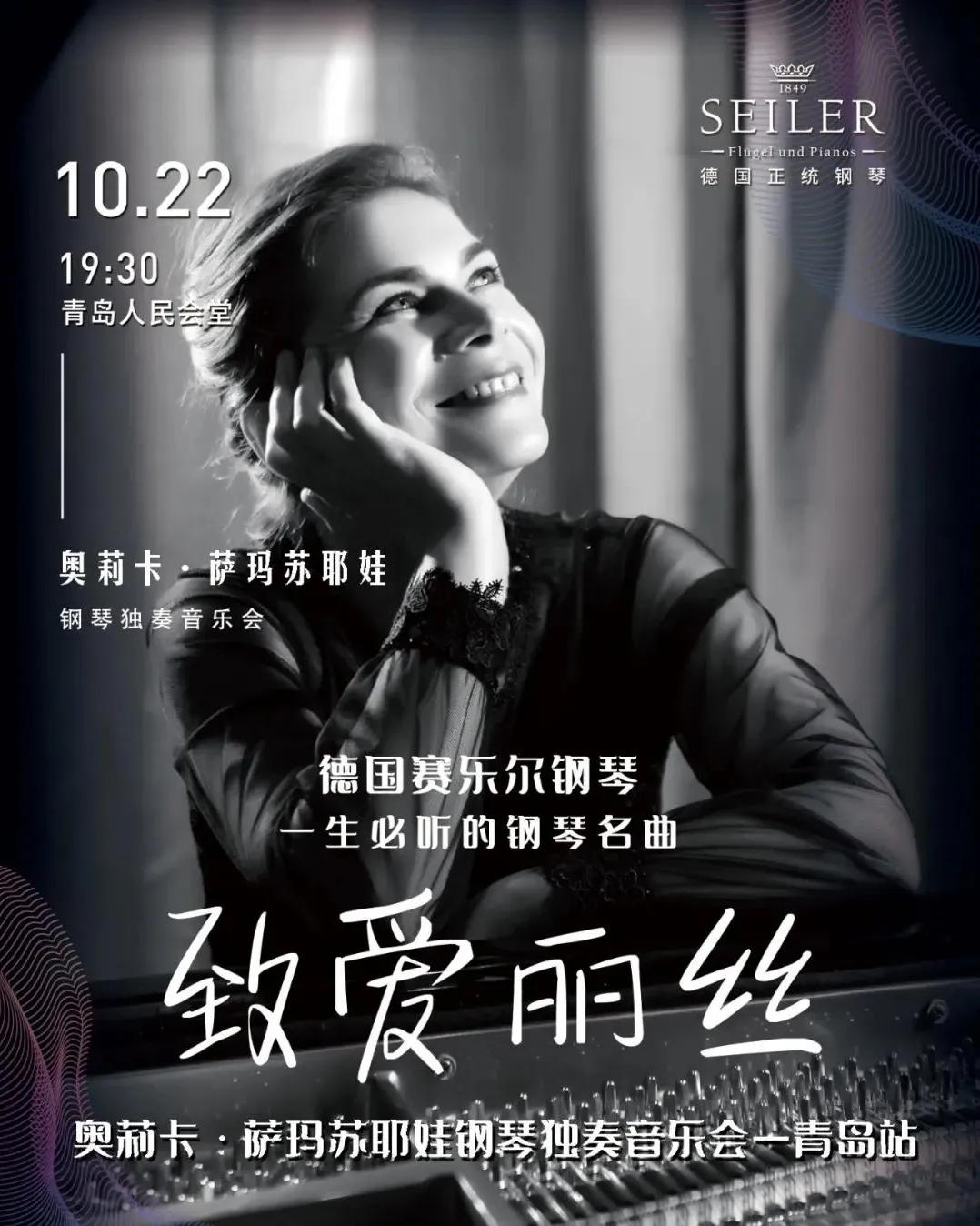 10月22日晚19:30,“德國賽樂爾鋼琴·一生必聽的鋼琴名曲|奧莉卡·薩瑪蘇耶娃鋼琴獨奏音樂會”在青島人民會堂華麗開啟。本次活動吸引了青島地區(qū)上千名愛好音樂的聽眾們前來觀看。整場演出高潮迭起,掌聲不斷。